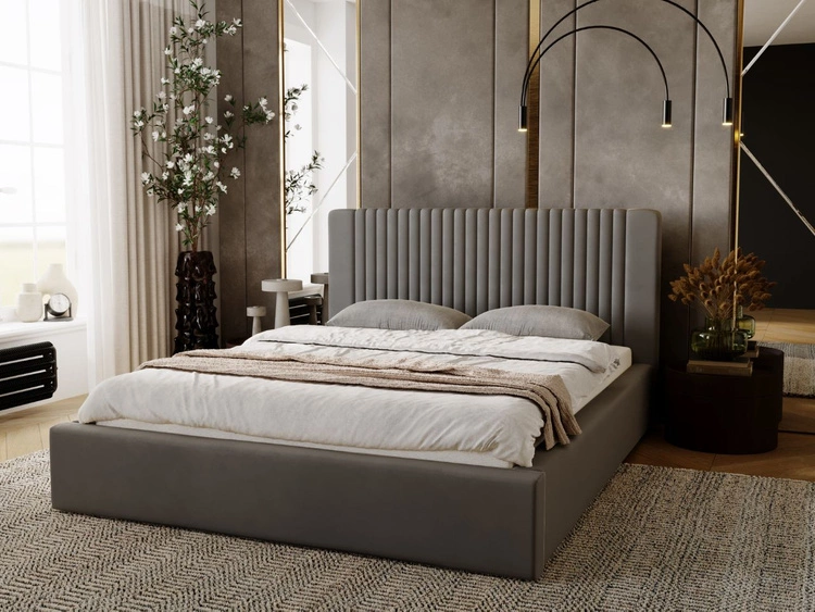 Łóżko tapicerowane z pojemnikiem i stelażem 160x200 Bonito Szary