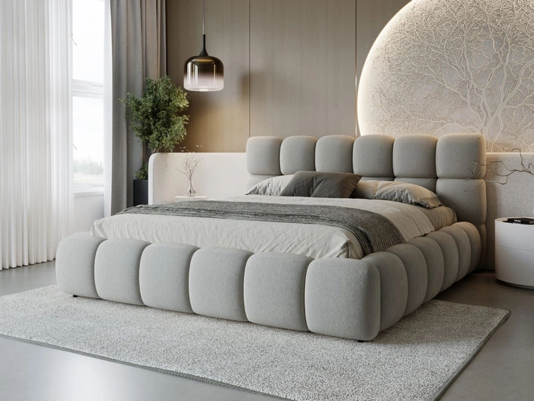 Łóżko tapicerowane z pojemnikiem i stelażem 140x200 cm Bubble Beżowe