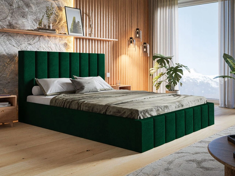 Łóżko tapicerowane z pojemnikiem i stelażem Siena 160x200 zielony