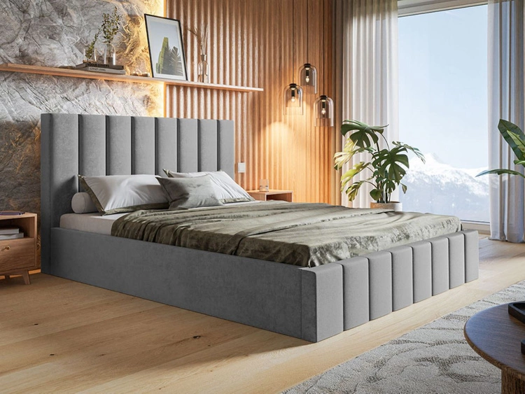 Łóżko tapicerowane z pojemnikiem i stelażem 160x200 Tivoli Jasnoszare