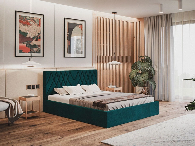 Łóżko tapicerowane z pojemnikiem i stelażem 160x200 Andri zielony