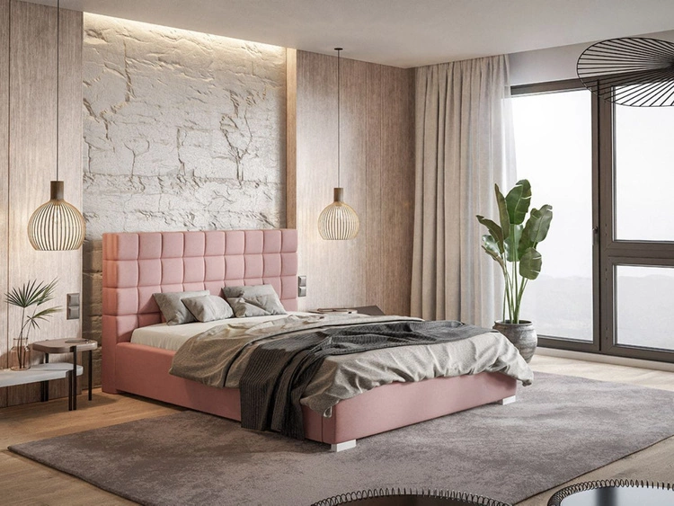 Łóżko tapicerowane z pojemnikiem i stelażem 180x200 Terra Różowe