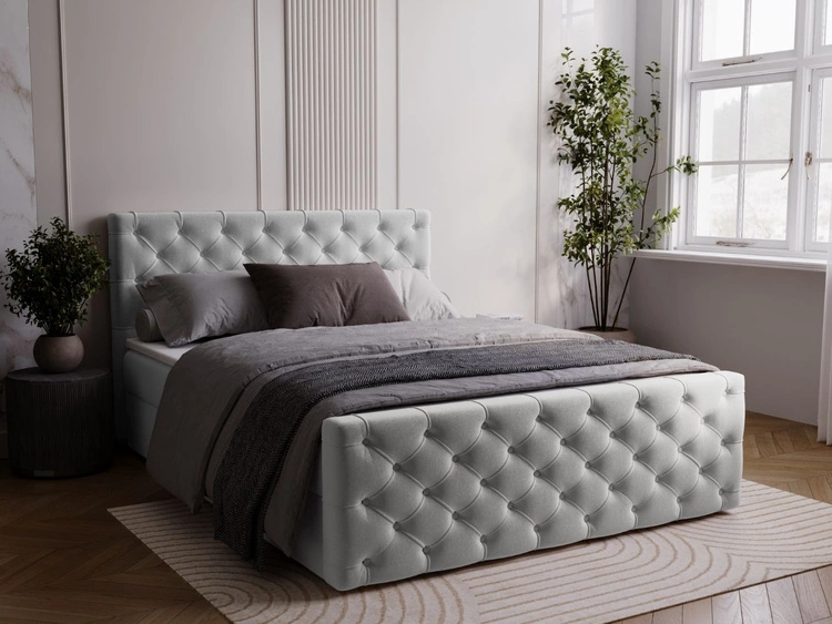 Łóżko kontynentalne z pojemnikiem na pościel 160x200 Primavera Jasnoszare