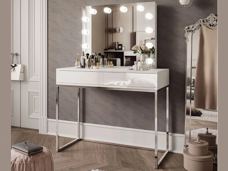 Toaletka glamour z szufladami, lustrem i oświetleniem LED Brisa biały połysk