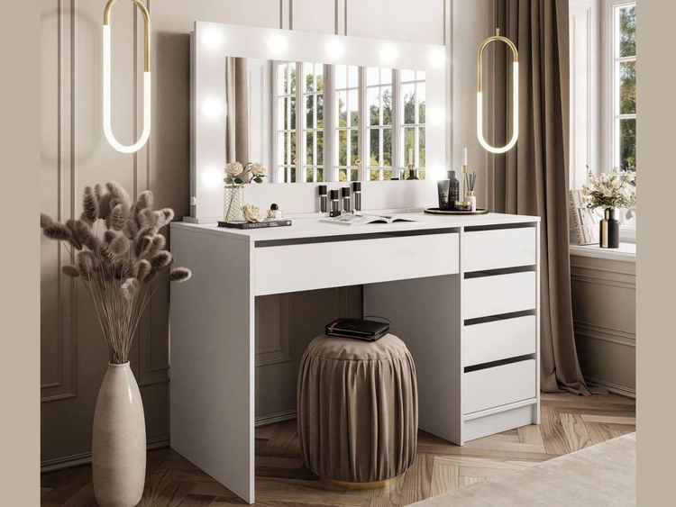 Toaletka glamour z lustrem, szufladami i oświetleniem LED Melo biały mat