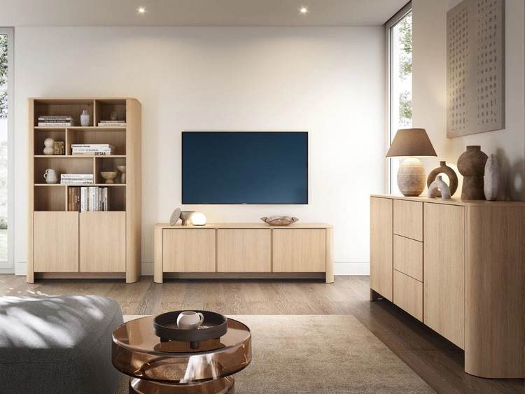 Zestaw mebli do salonu ze złotą listwą dekoracyjną Brillo Dąb Vicenza