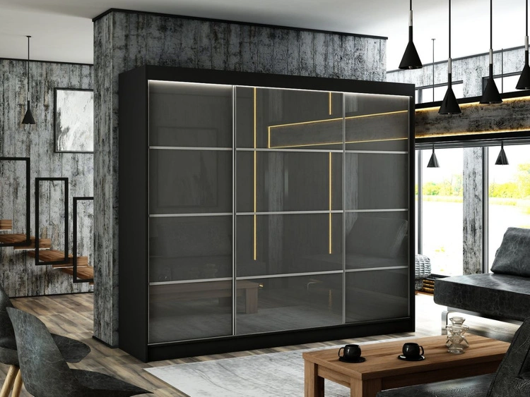 Ilość produktów: 4416Szafa przesuwna ze szprosami 250 cm z oświetleniem LED Ponti Czarna, Szara