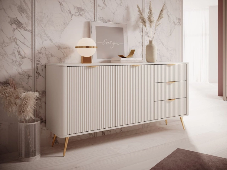 Komoda z drzwiami i szufladami na złotych nogach Viva Beżowa