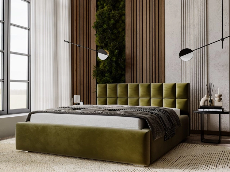 Łóżko tapicerowane z pojemnikiem i stelażem 200x200 Hugo Zielone