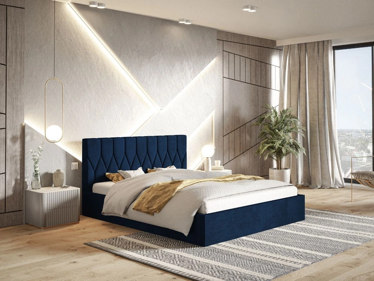 Łóżko kontynentalne z pojemnikiem na pościel 160x200 Kate Ciemnoniebieskie