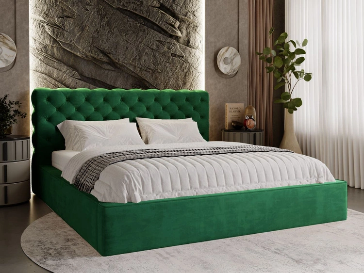 Łóżko tapicerowane z pojemnikiem i stelażem 180x200 Apollo Zielone