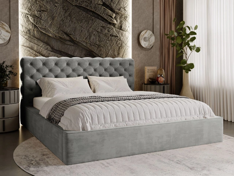Łóżko tapicerowane z pojemnikiem i stelażem 180x200 Apollo Szare