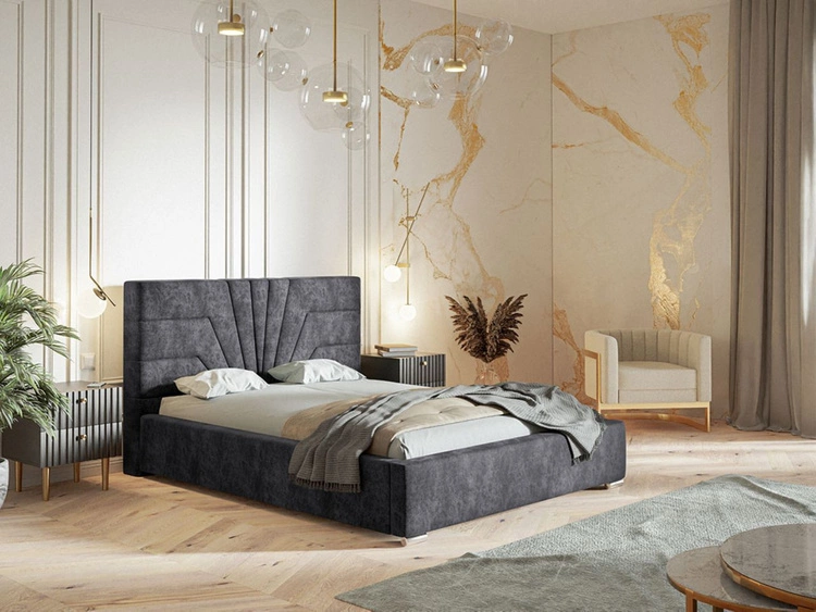 Łóżko tapicerowane z pojemnikiem i stelażem Siena 160x200 szary