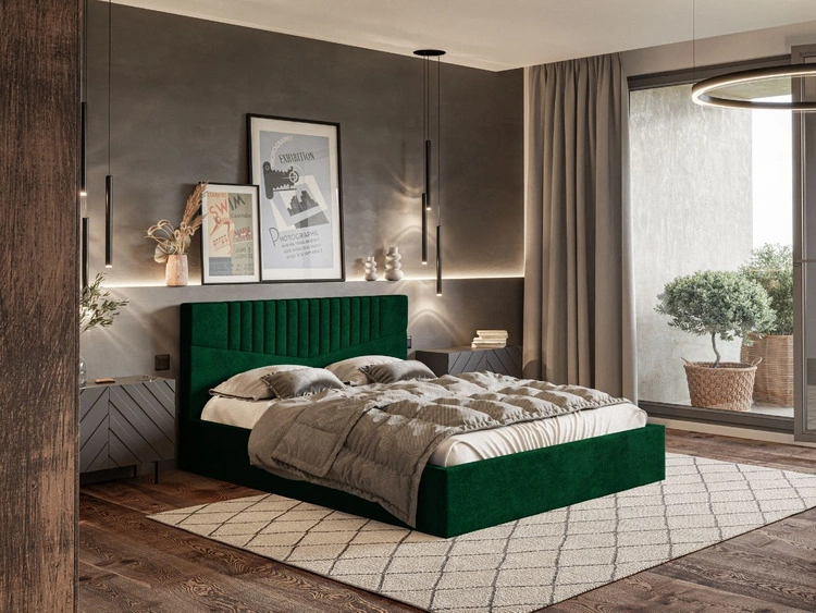 Łóżko tapicerowane z pojemnikiem i stelażem 160x200 Corti Ciemny zielony