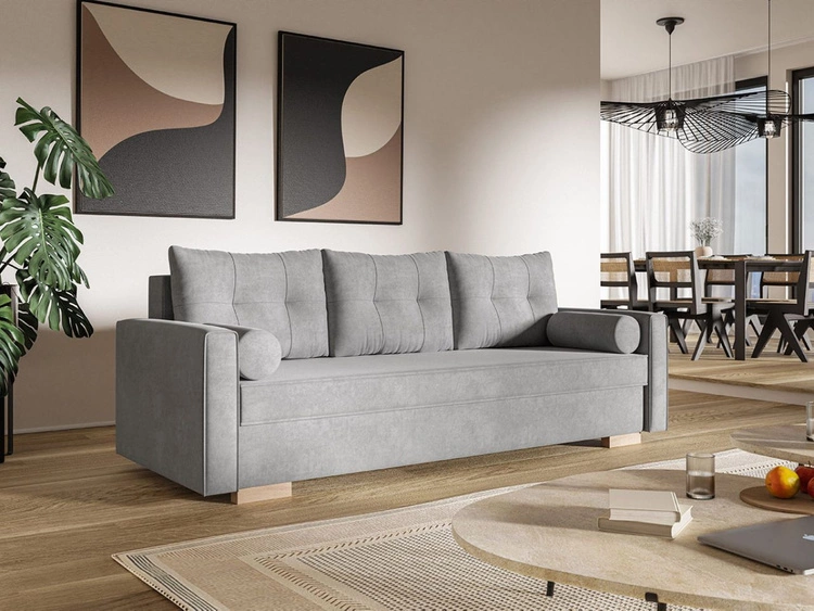 Kanapa z funkcją spania i pojemnikiem na pościel Pori szara