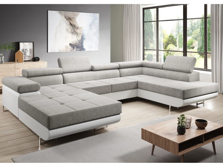 Narożnik U prawy z funkcją spania i pojemnikiem Solam U Szary, Biały