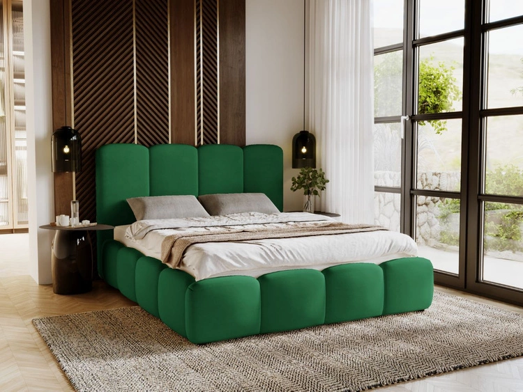 Łóżko tapicerowane z pojemnikiem i stelażem 200x200 Galli Zielone