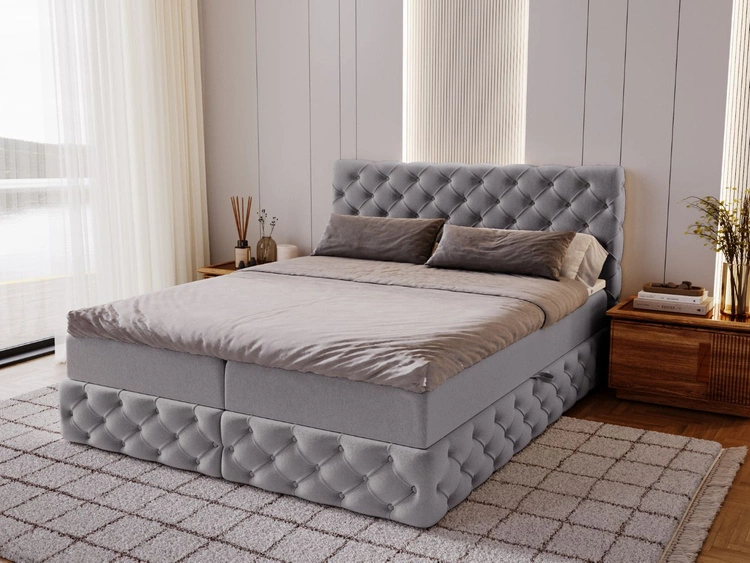 Łóżko kontynentalne z pojemnikiem na pościel 160x200 Montego Jasnoszare