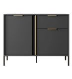 Komoda z drzwiami i szufladami Amber szara na czarnych nogach