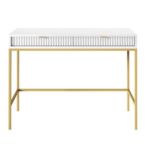 Toaletka kosmetyczna z szufladami, czarnymi nogami i oświetleniem LED Olivine biały połysk