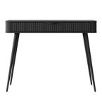 Toaletka kosmetyczna w stylu glamour z szufladami, czarnymi nogami i oświetleniem LED Olivine Elite czarny połysk